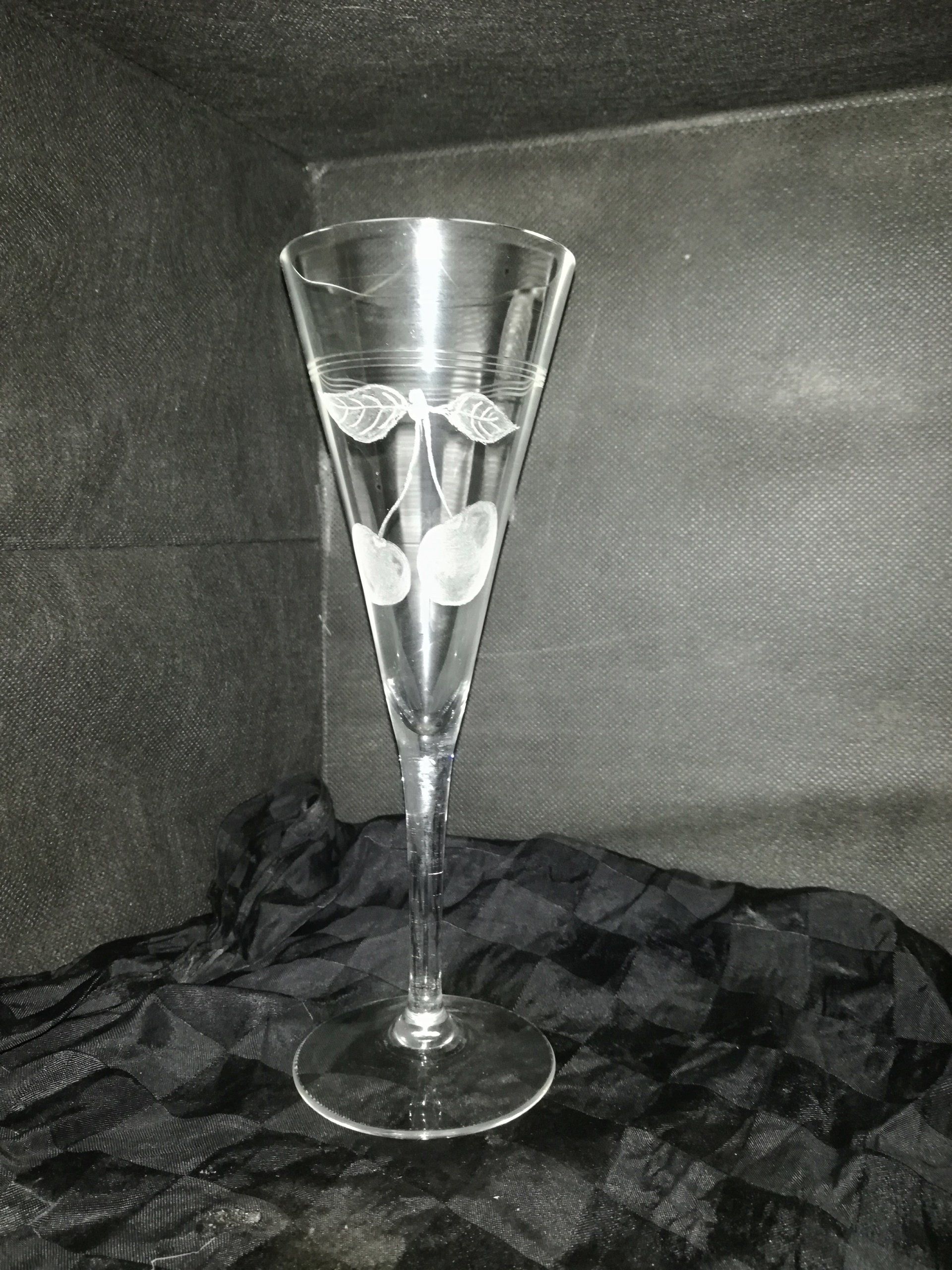 von Hand ins Glas geschliffen.