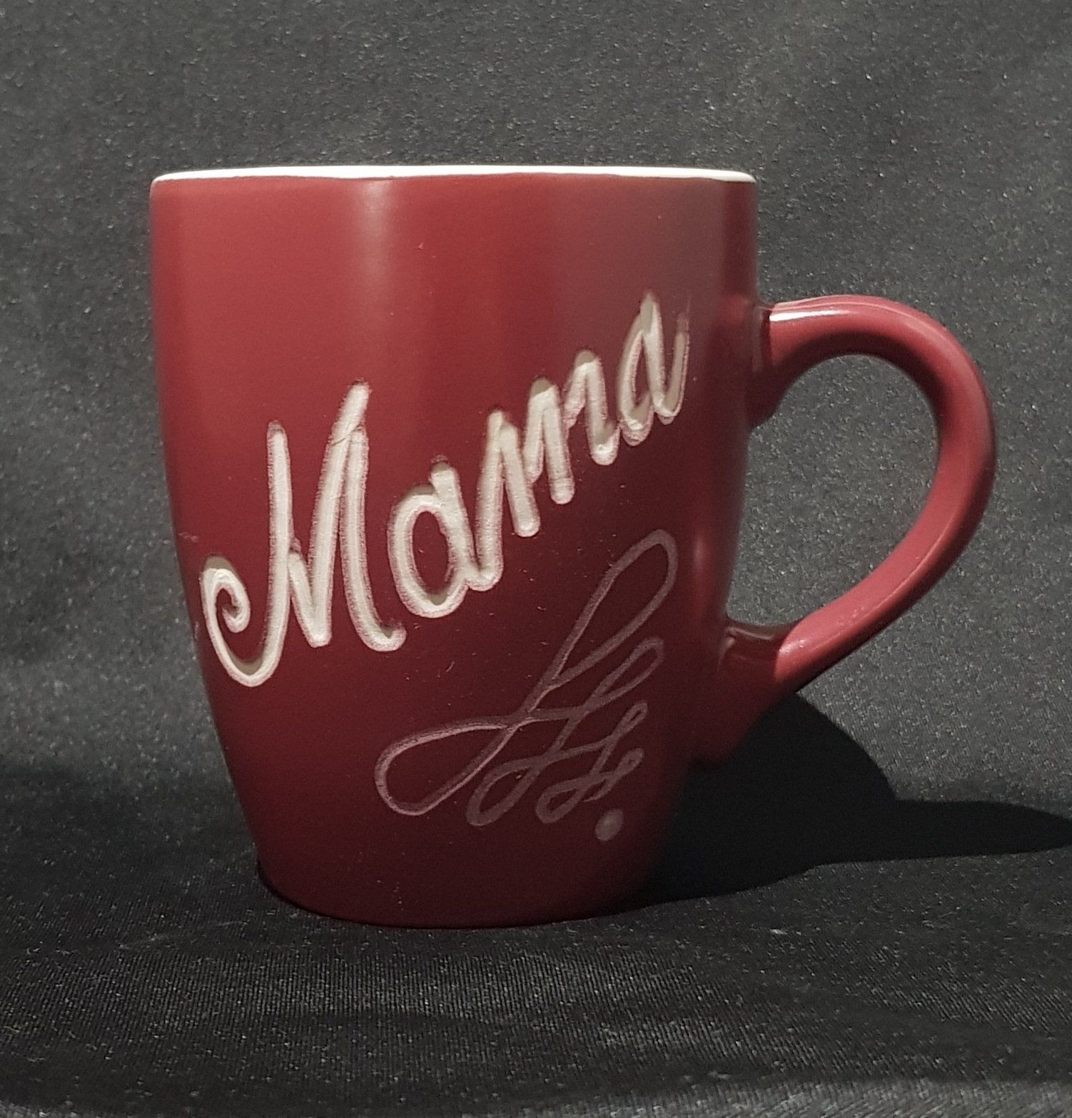 von Hand ins Glas geschliffen.