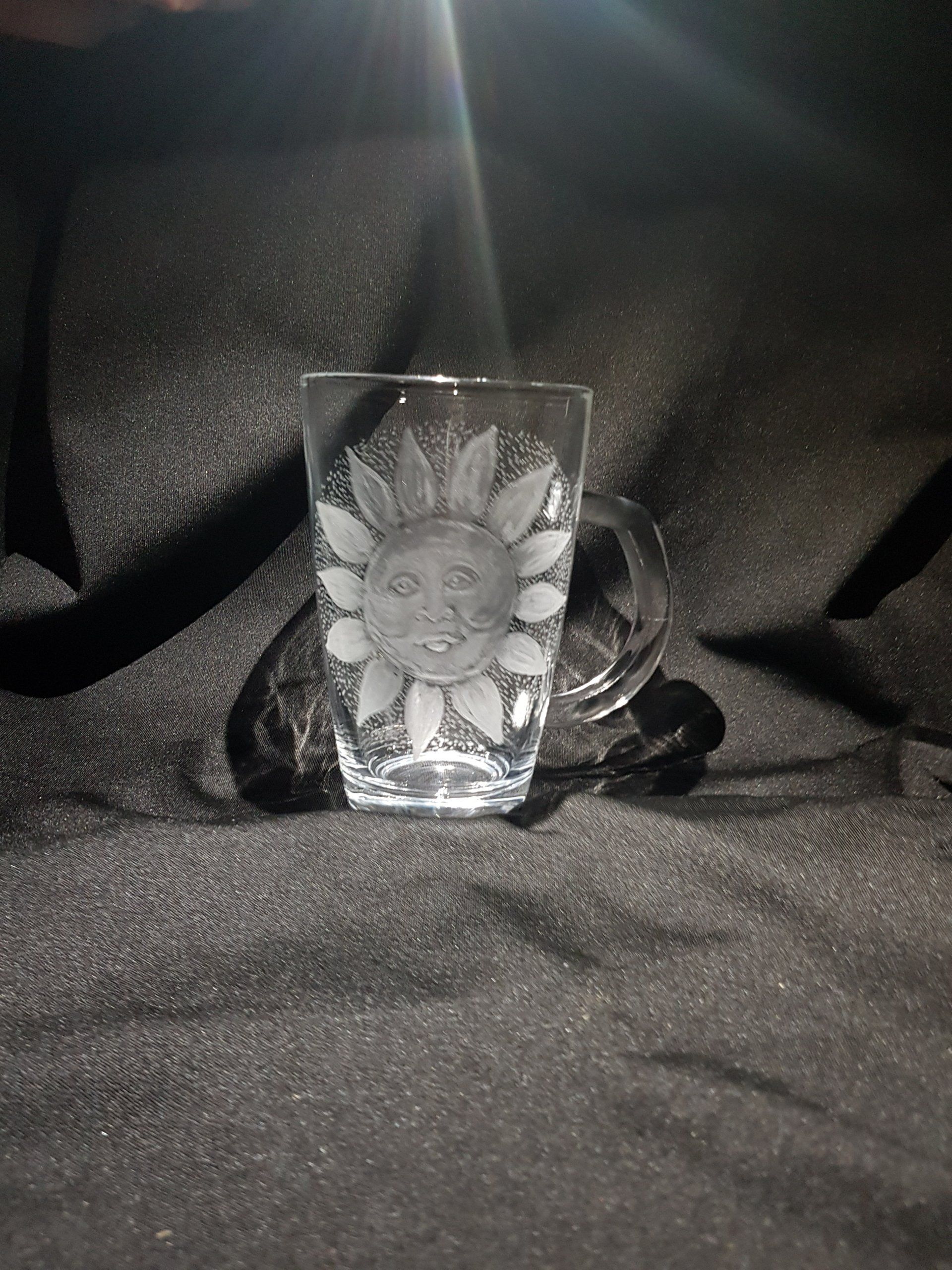 Eine Glastasse für Genießer, in liebevollter Handarbeit graviert.